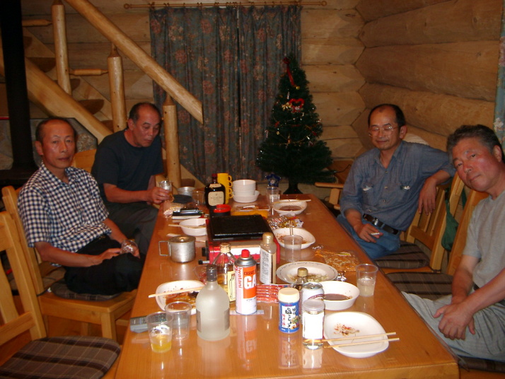 昨年と変わらない風景。メニューも焼肉を中心に、今回は刺身、ギョーザ、キムチ、もやしとキャベツの炒めもの、加賀揚げ、焼きそば、げそにぎり寿司、太巻き寿司、かっぱ巻き寿司、などと賑々しく飲んで食べました。